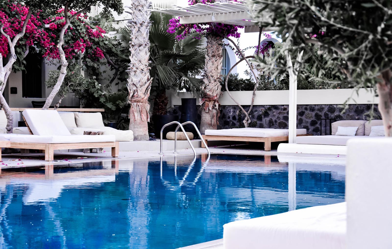 Palmeria Hotel is one of the most recognizable coastal resorts, located in fancy Perissa area of Santorini.