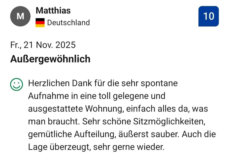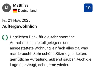 "Phantastisch eingerichtetes Apartment, es fehlt an nichts. Einziehen und Wohlfühlen, echt klasse"
